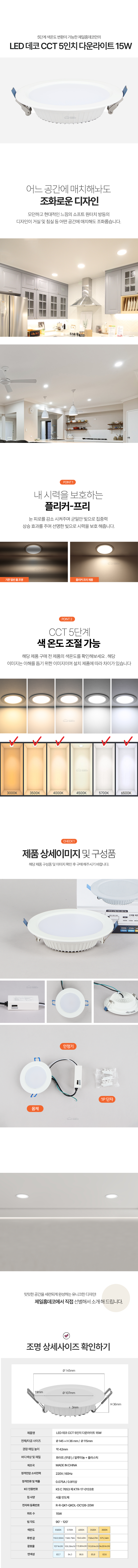 [다운라이트] LED 데코 CCT 5인치 15W_5색변환