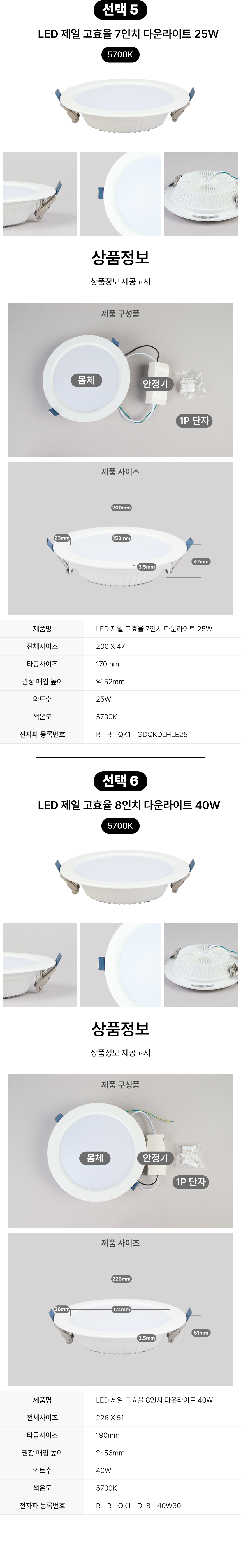 [다운라이트] LED 제일 고효율 모음 (3~8인치)