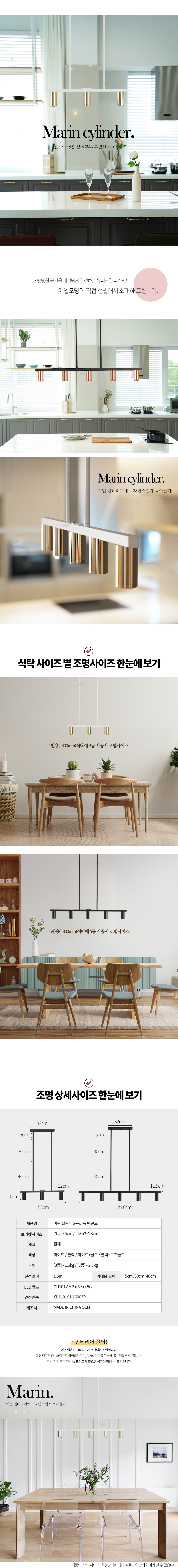 [PD] 마린 실린더 3등/5등 펜던트_4Color