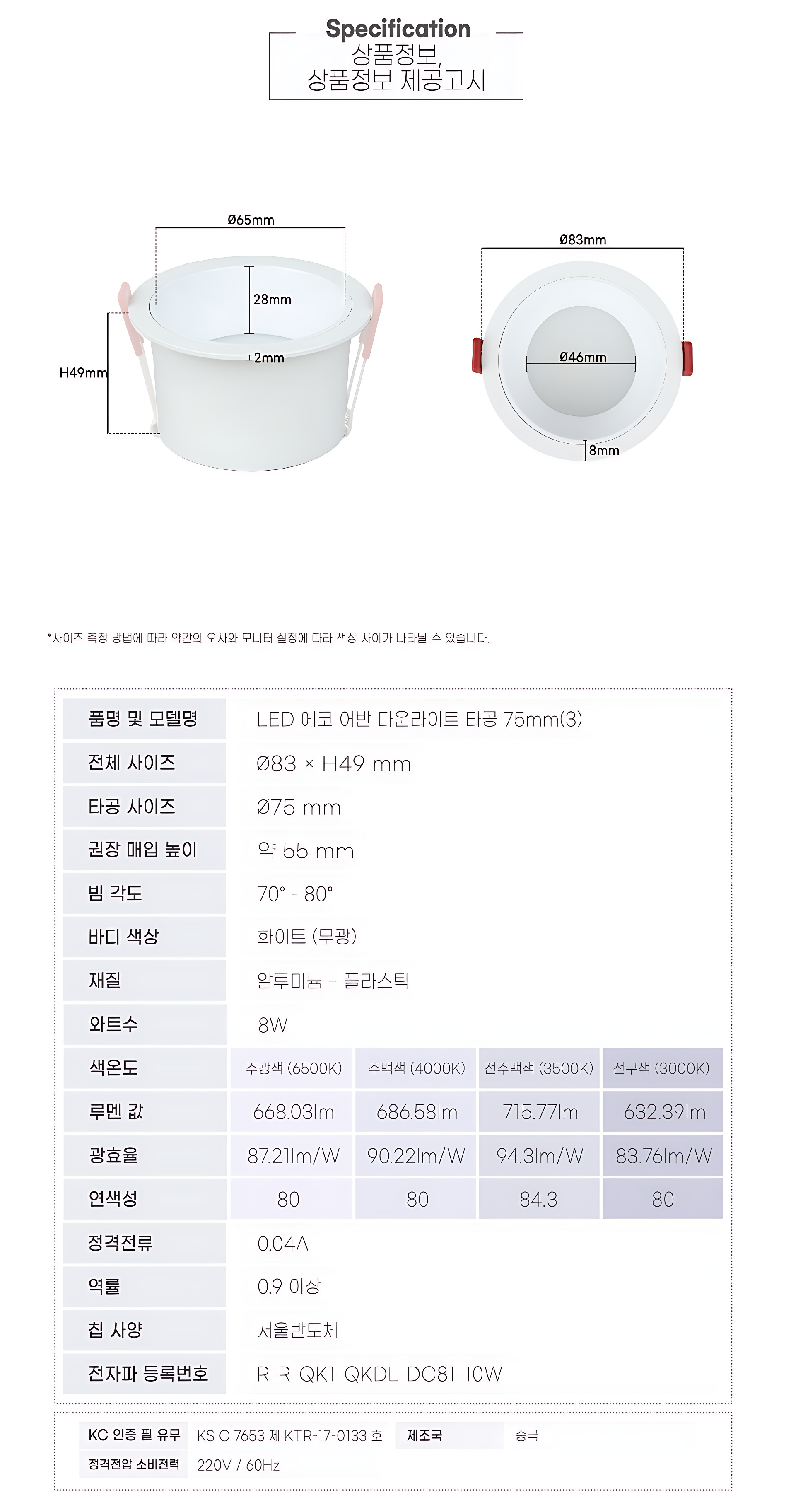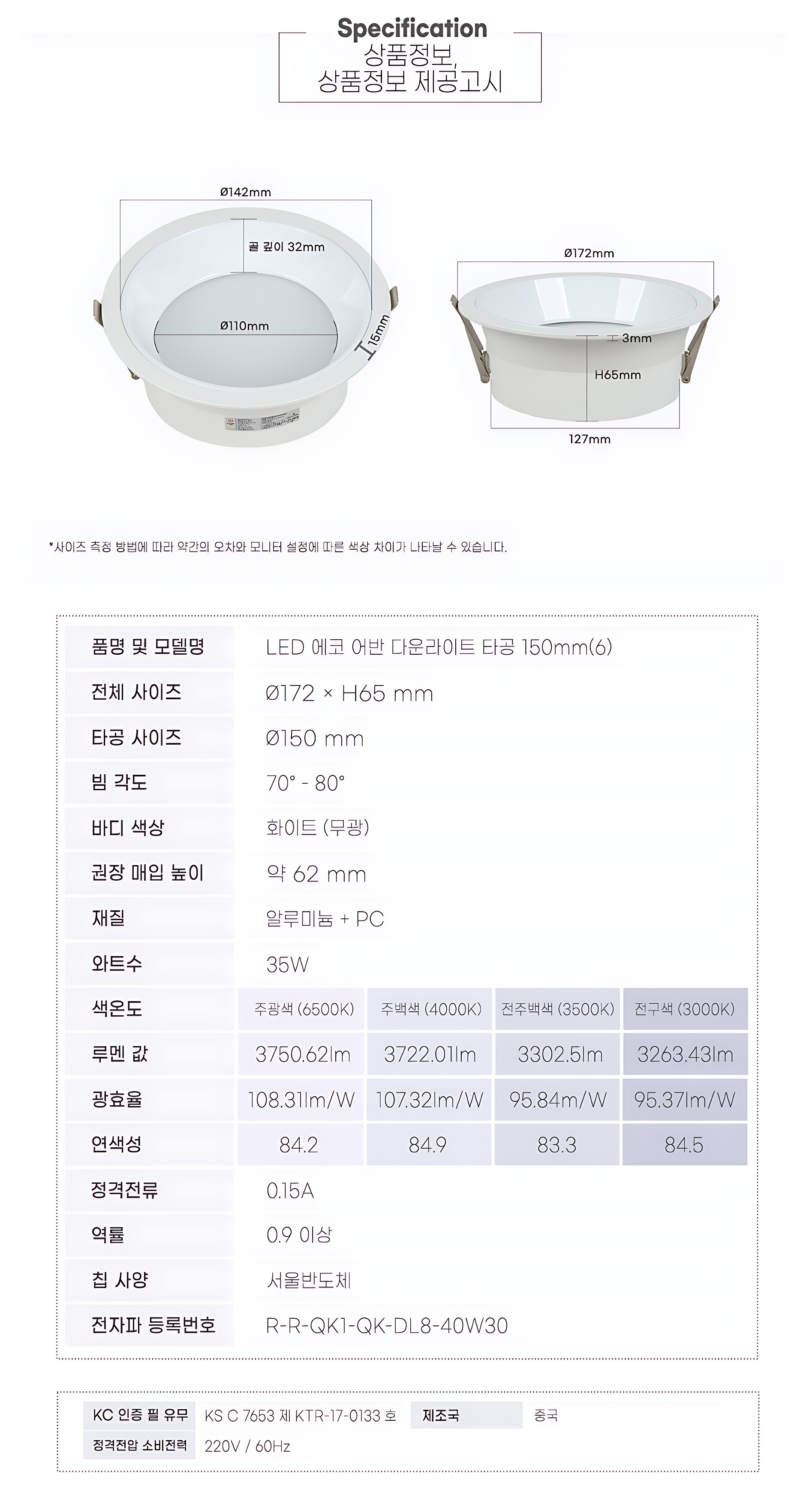 [다운라이트] LED 어반 (DC타입)_4Color / 2~6인치