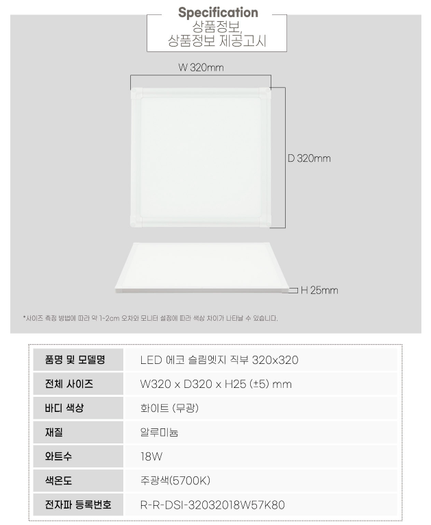 [직부] LED 엣지 면조명 18W (320x320)