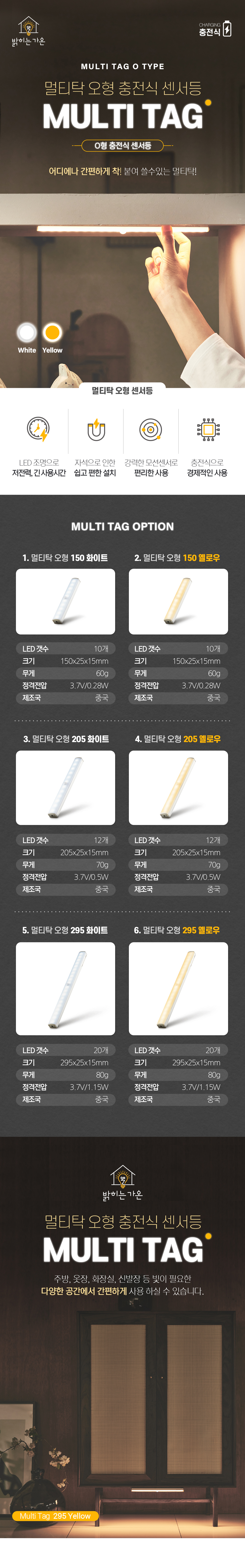 [센서] 센서라이트 멀티탁 충전식 오형