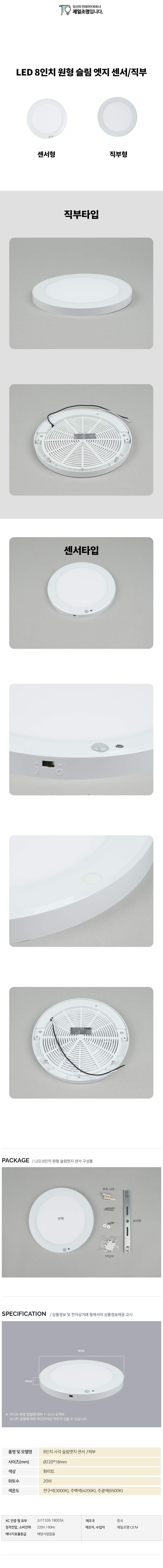 [직부/센서] LED 8인치 엣지 원형
