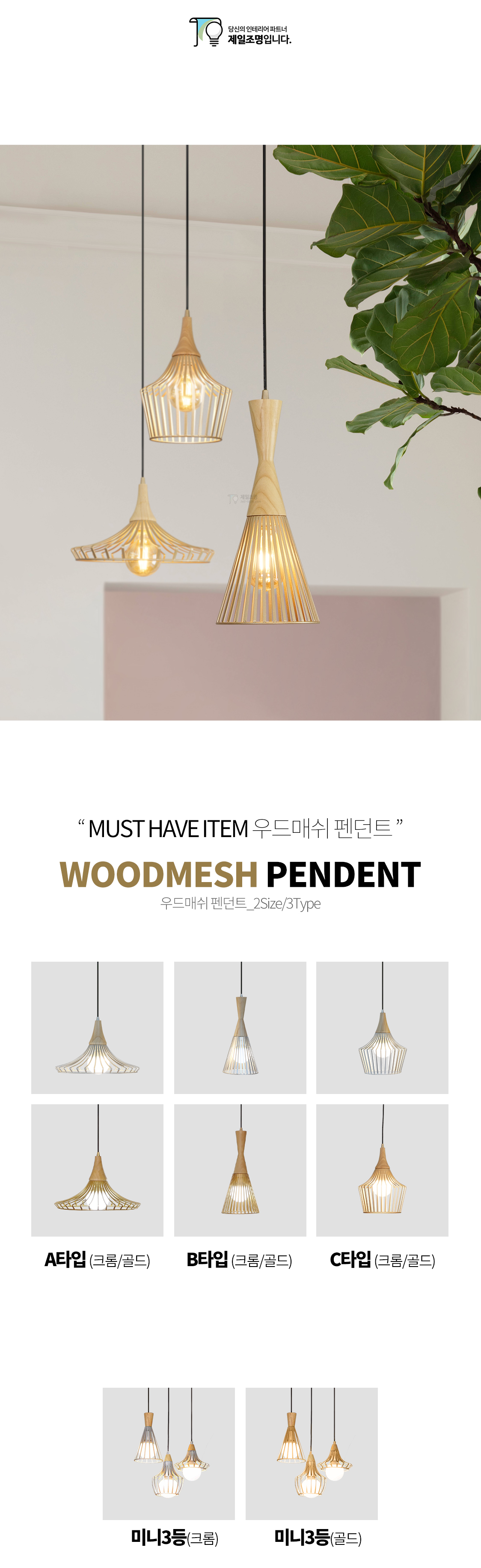 [P/D] 우드매쉬 펜던트 1등/ 미니3등