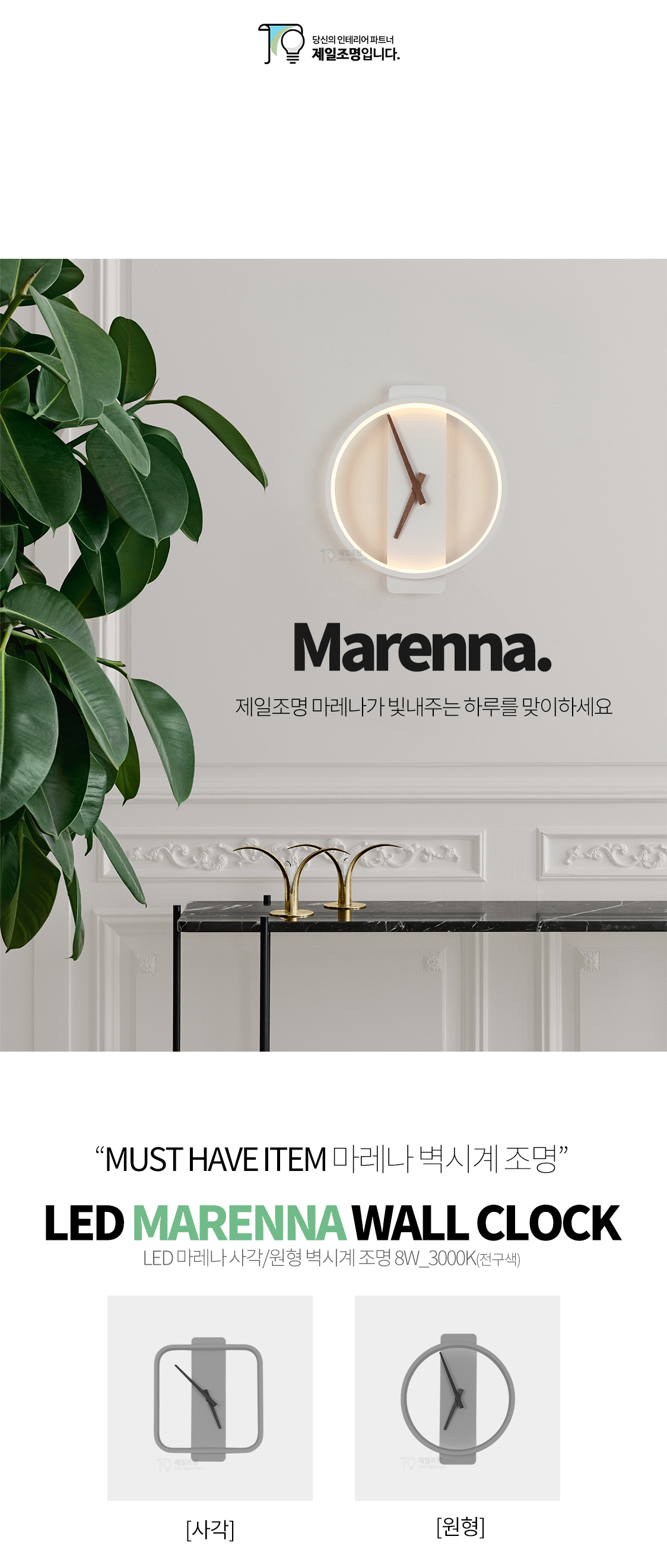 [벽시계] LED 마레나 사각/원형 벽시계 조명