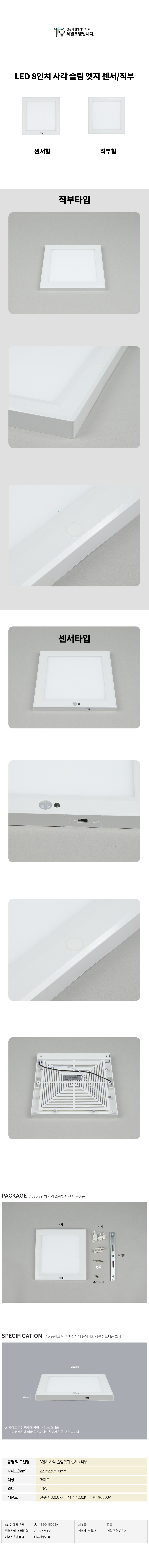 [직부/센서] LED 8인치 엣지 사각
