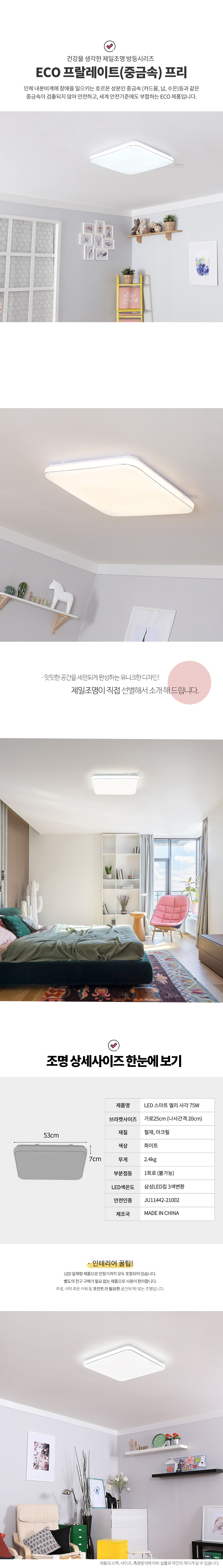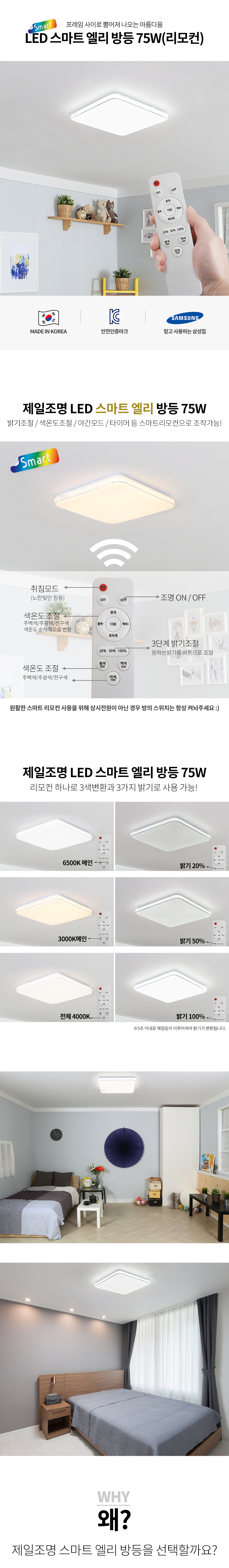 [방등] LED 스마트 엘리 사각 75W 삼색변환 (리모컨/디밍)