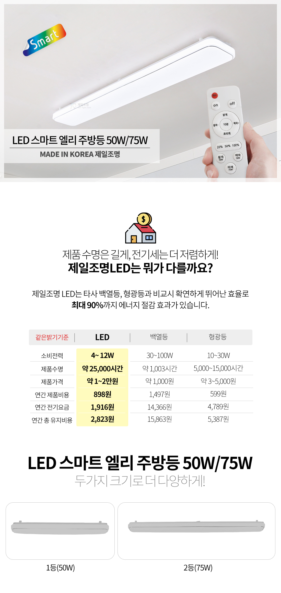 [주방] LED 스마트 엘리 주방 삼색변환 50W/75W