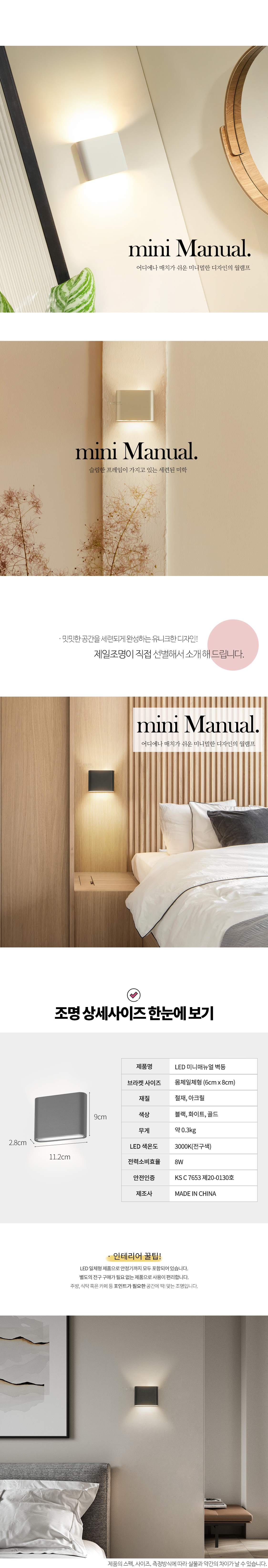 [B/R] LED 미니매뉴얼 벽등 8W_3Color