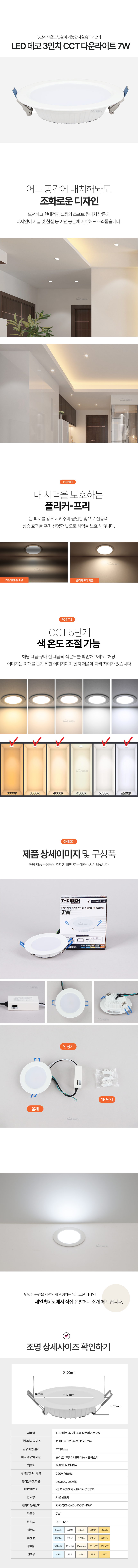 [다운라이트] LED 데코 CCT 3인치 7W_5색변환