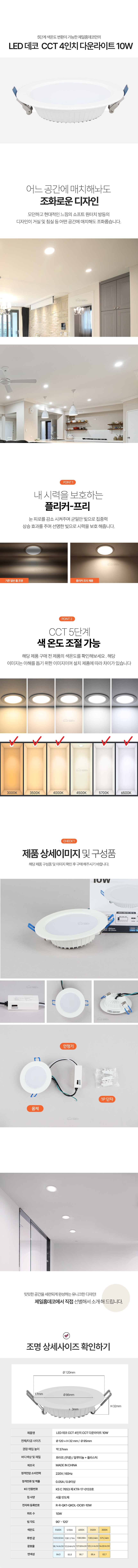 [다운라이트] LED 데코 CCT 4인치 10W_5색변환