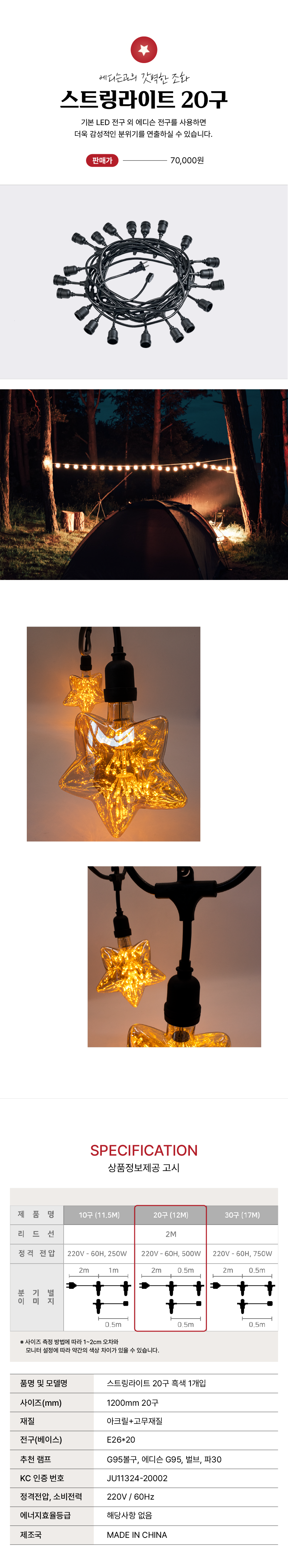 [크리스마스] 스트링라이트 20구 & 램프 세트 할인