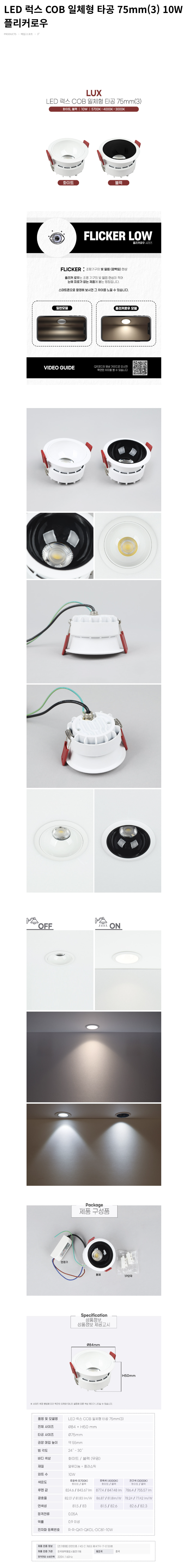 럭스 COB 일체형 3인치 다운라이트 10W 플리커로우